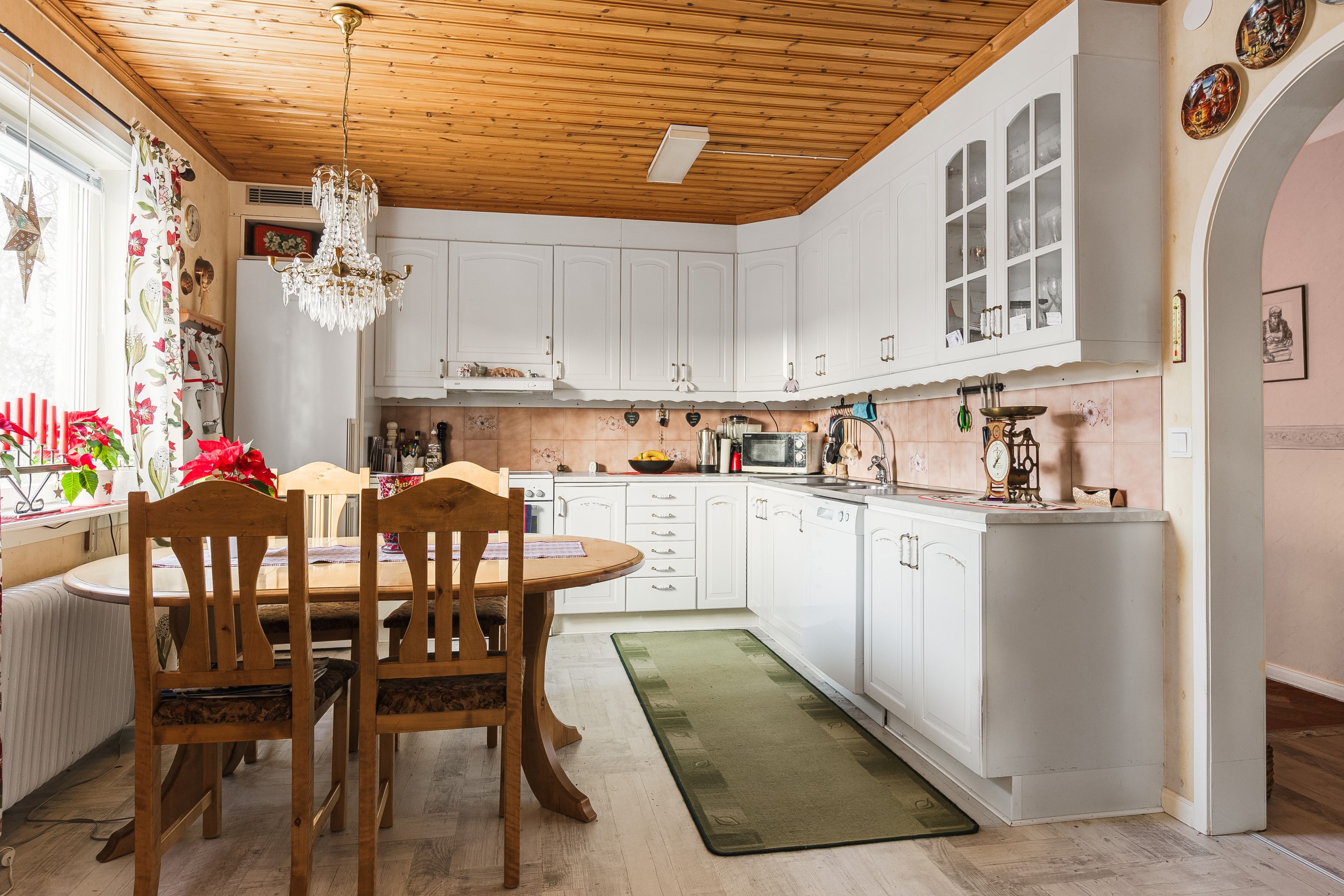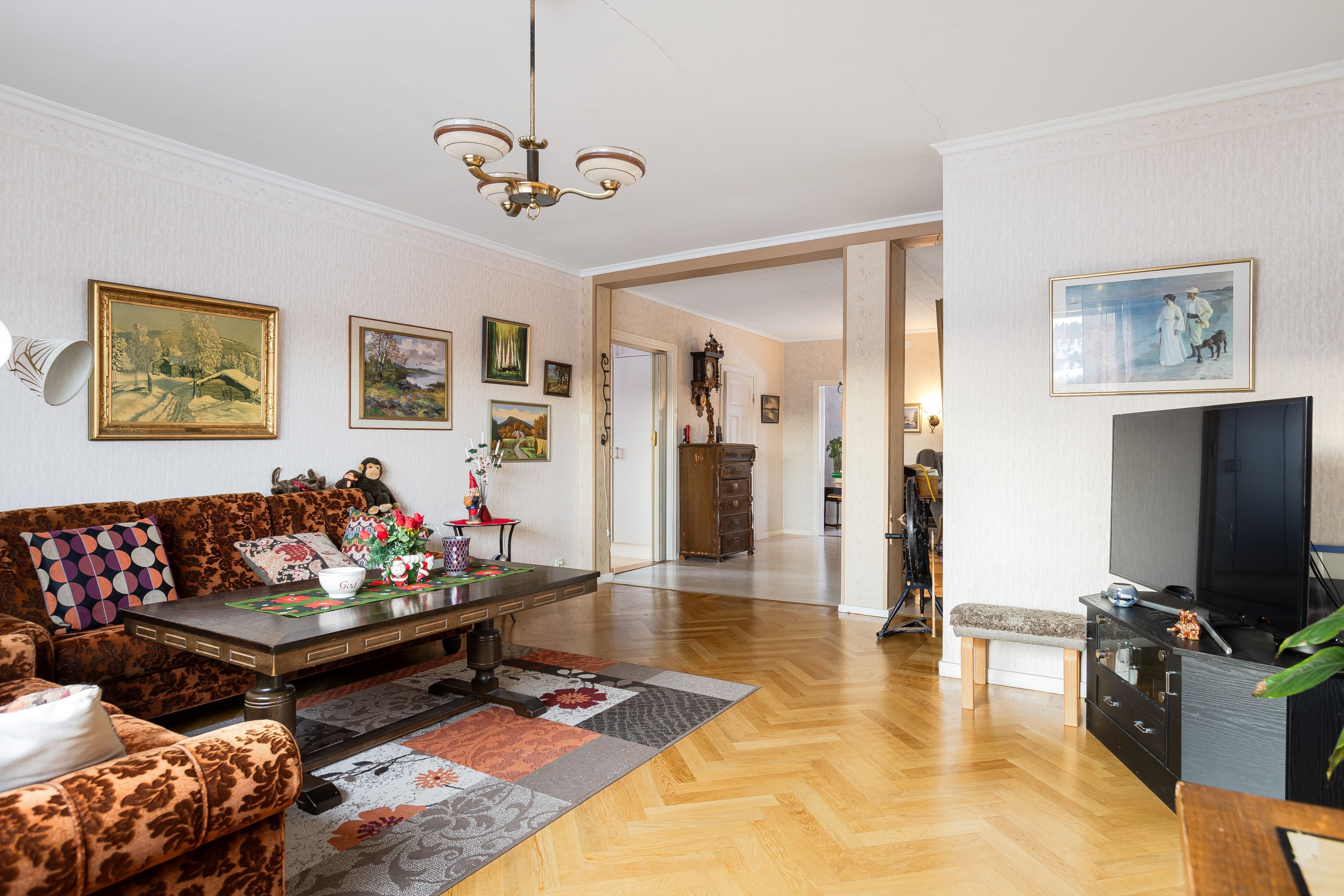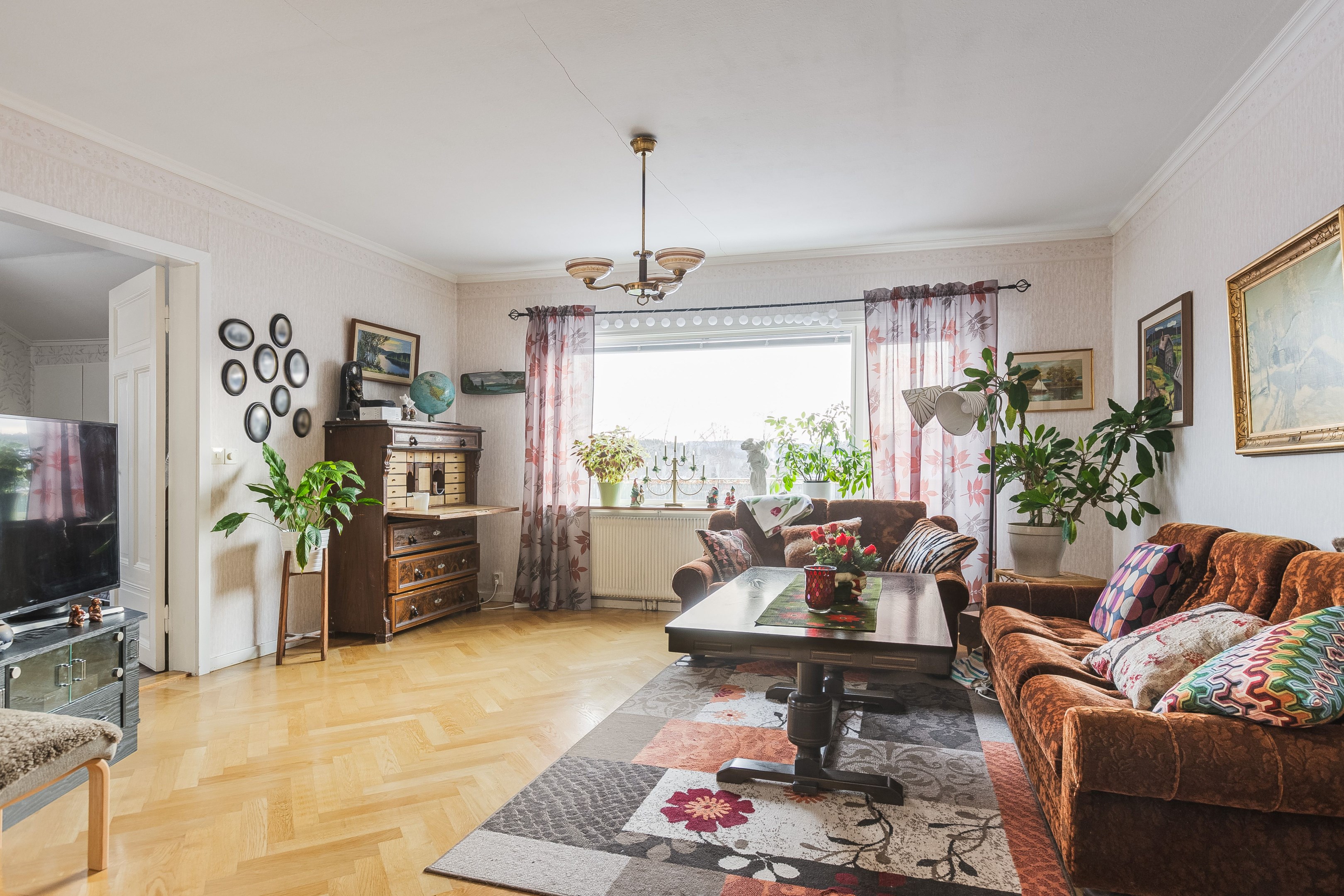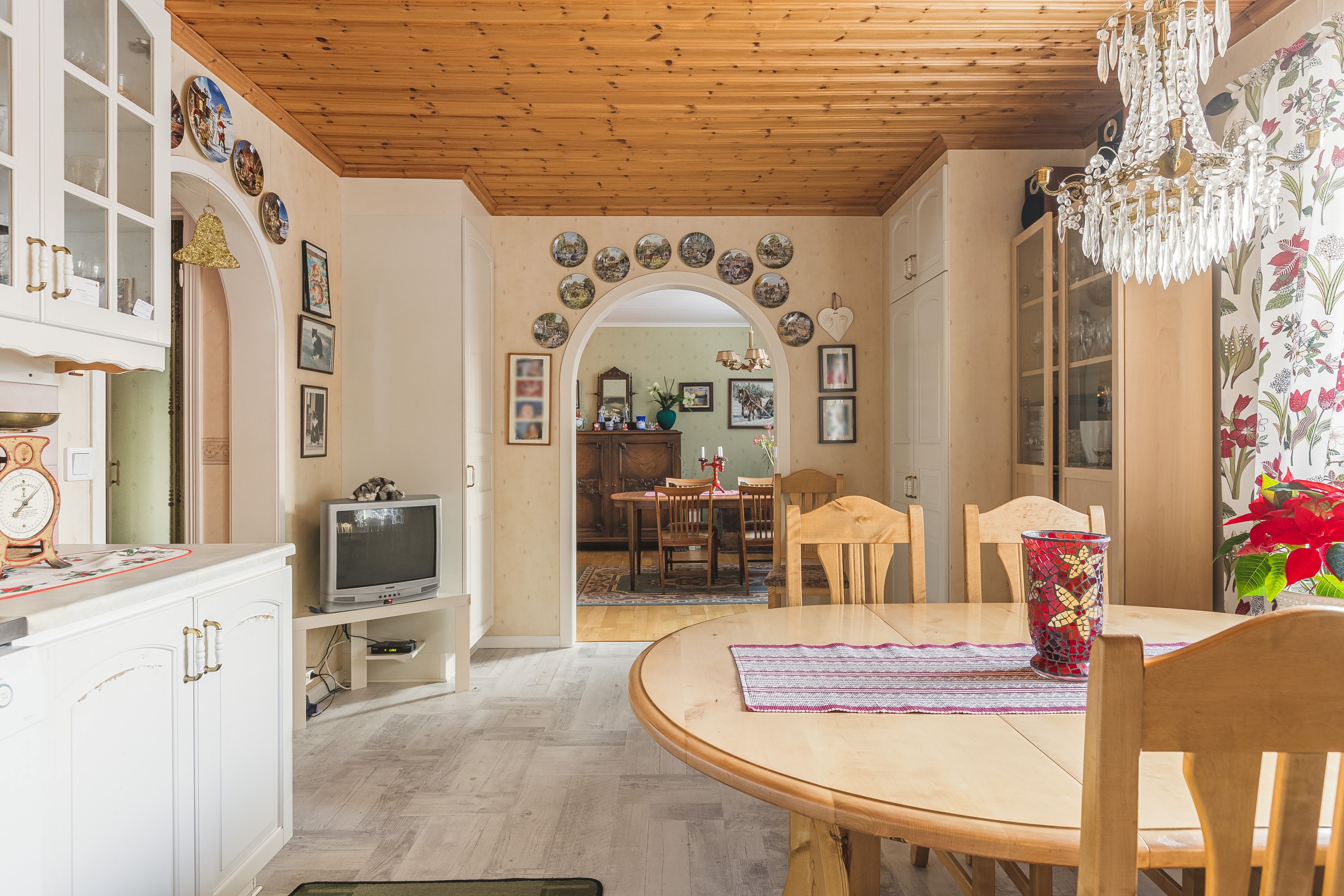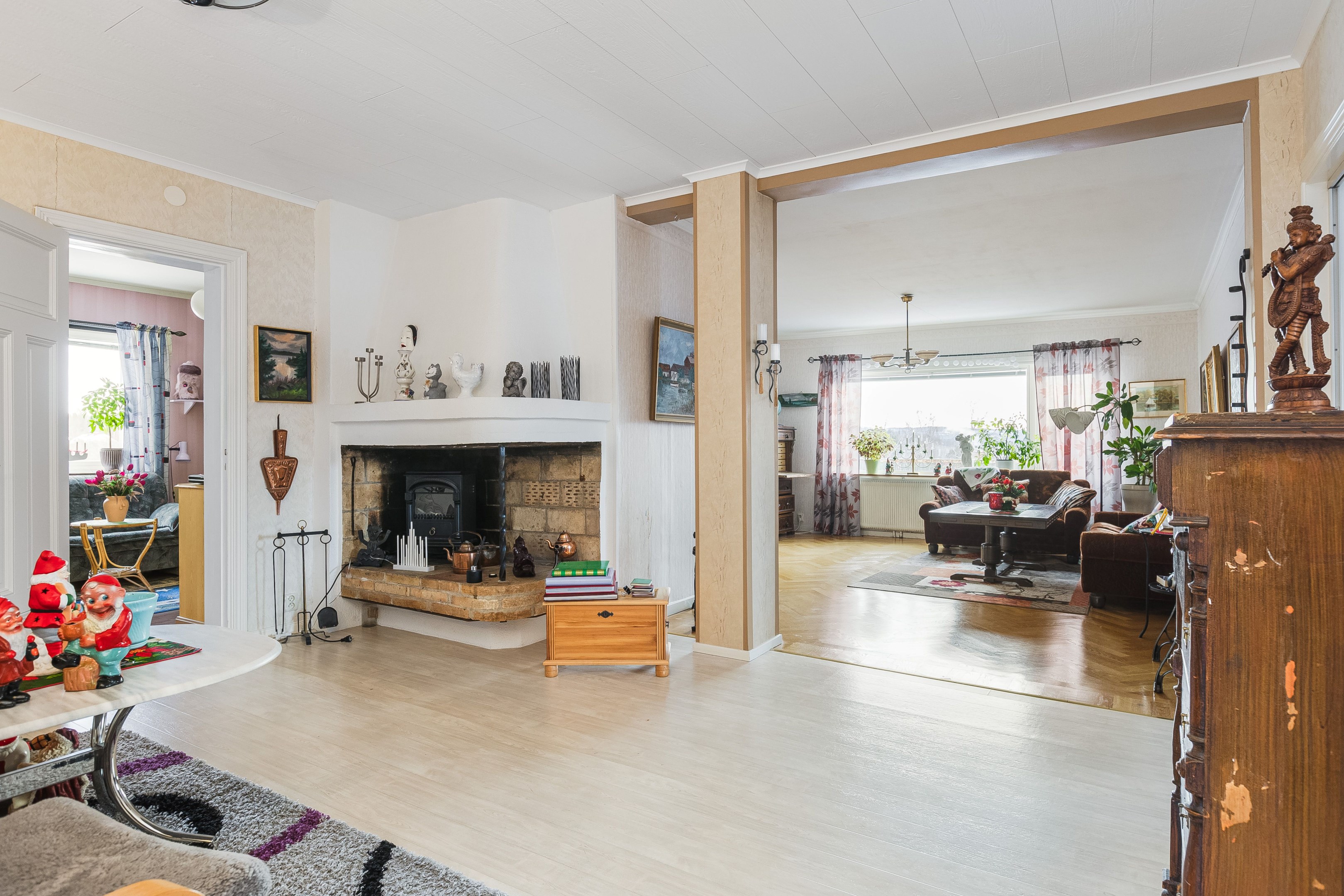 Välkommen in i den rymliga hallen! Härifrån tar vi oss vidare in i huset och till höger finner vi köket som har god yta för matlagning samt plats för matbord. Intill köket ligger även ett rum som med fördel kan användas för de större middagarna. innanför matsalen finns även ett rum till som kan användas som sovrum eller kotor. Från husets hall kommer man även upp till övervåningen där vi förutom vardagsrum även finner sovrum samt badrum/tvättstuga. husets kälare når man från utsidan, har nere finns förutom bergvärmen plats för förvaring. I husets bottenvåning finns även en lägenhet som i dagsläget hyrs ut. Ett bra sätt för att få ner driftkostnaderna på sitt boende! Marken ruunt huset består av gräsyta samt träd. Här finns även ett uthus med god plats till förvaring samt ett lusthus för kaffe i sommarvärmen! Varmt välkommen på visning!
