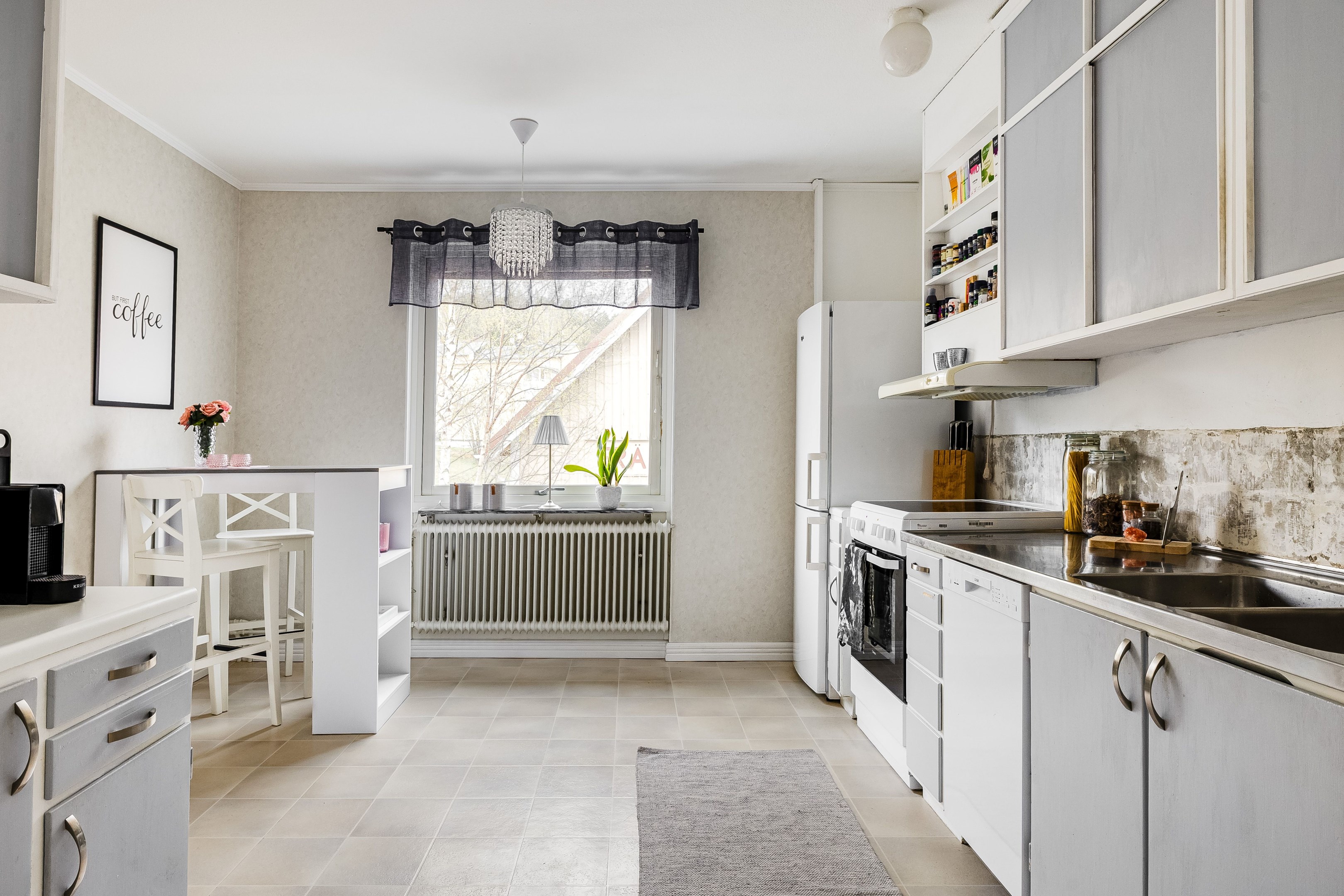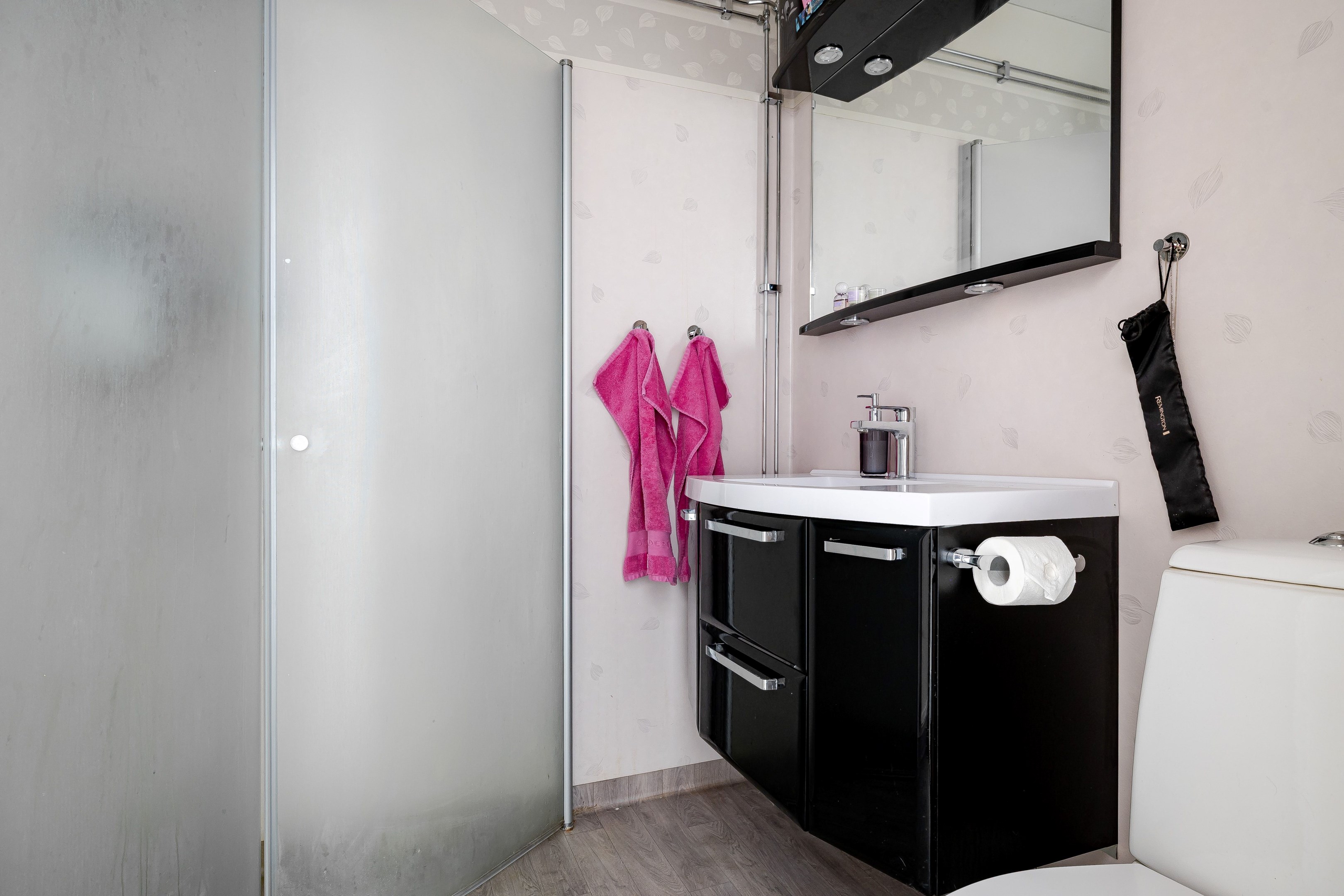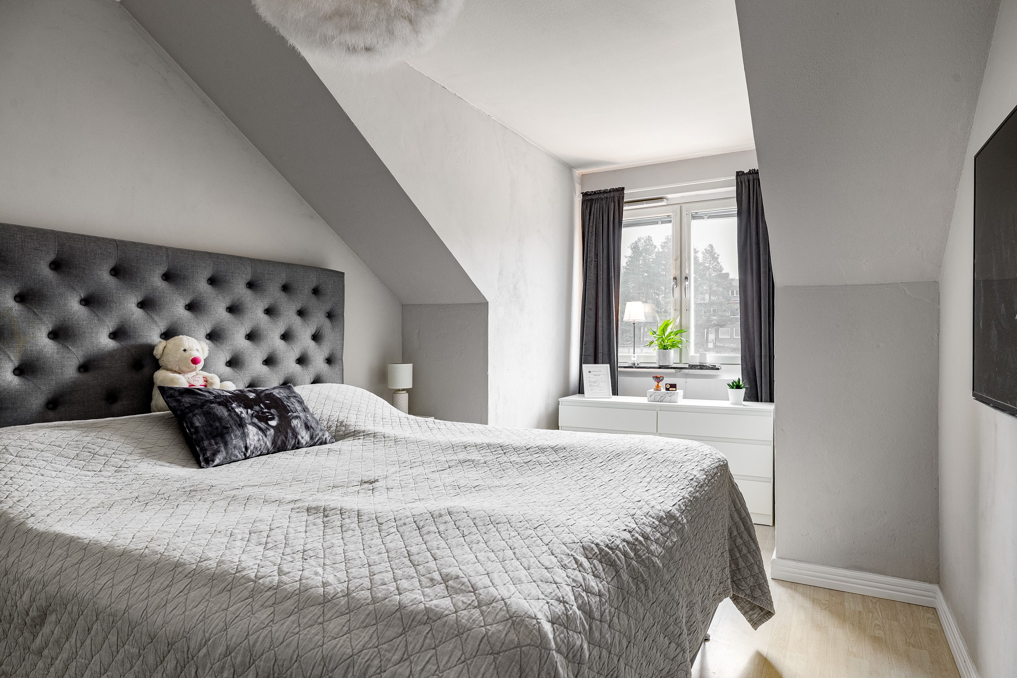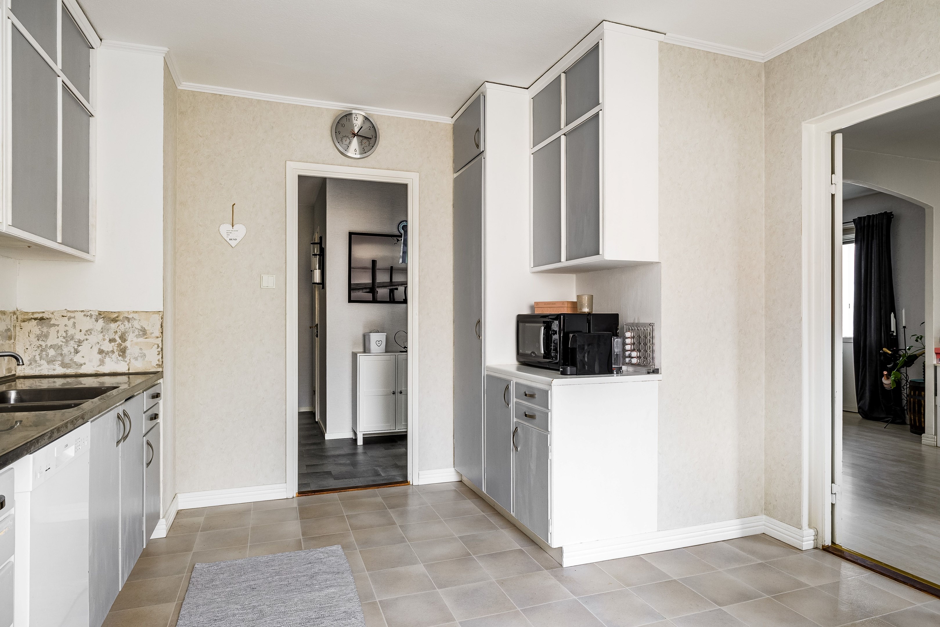 Välkommen in i! Hallen i lägenheten är placerad centralt och till vänster når man sovrummet som har bra med plats för dubbelsäng samt förvaringsmöbler. Intill sovrummet finns även ett förrådsutrymme med bra plats. Badrummet i lägenheten är utrustat med WC, kommod samt dusch med glasdörrar. Till höger från entrén når man köket som har bra storlek och ger en ljus känsla. Vardagsrum i två sektioner där den ena delen kan nyttjas som sovrum om man skulle vilja. I dagsläget är det inrett som utökat vardagsrum med plats för matbord. Från vardagsrummet så når man även lägenhetens inglasade altan med utsikt bort mot Kyrkviken.