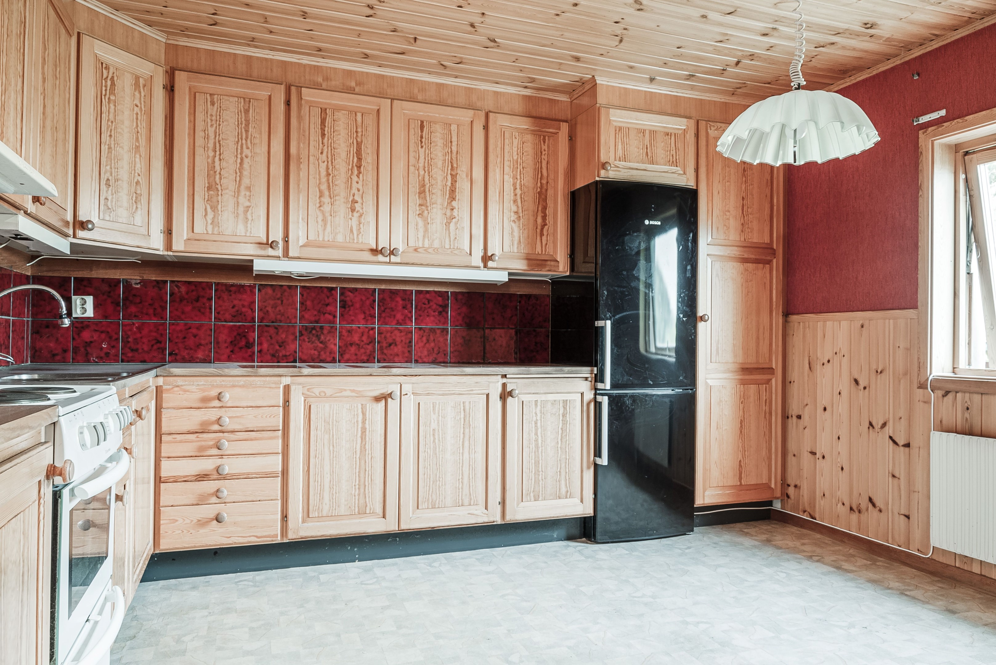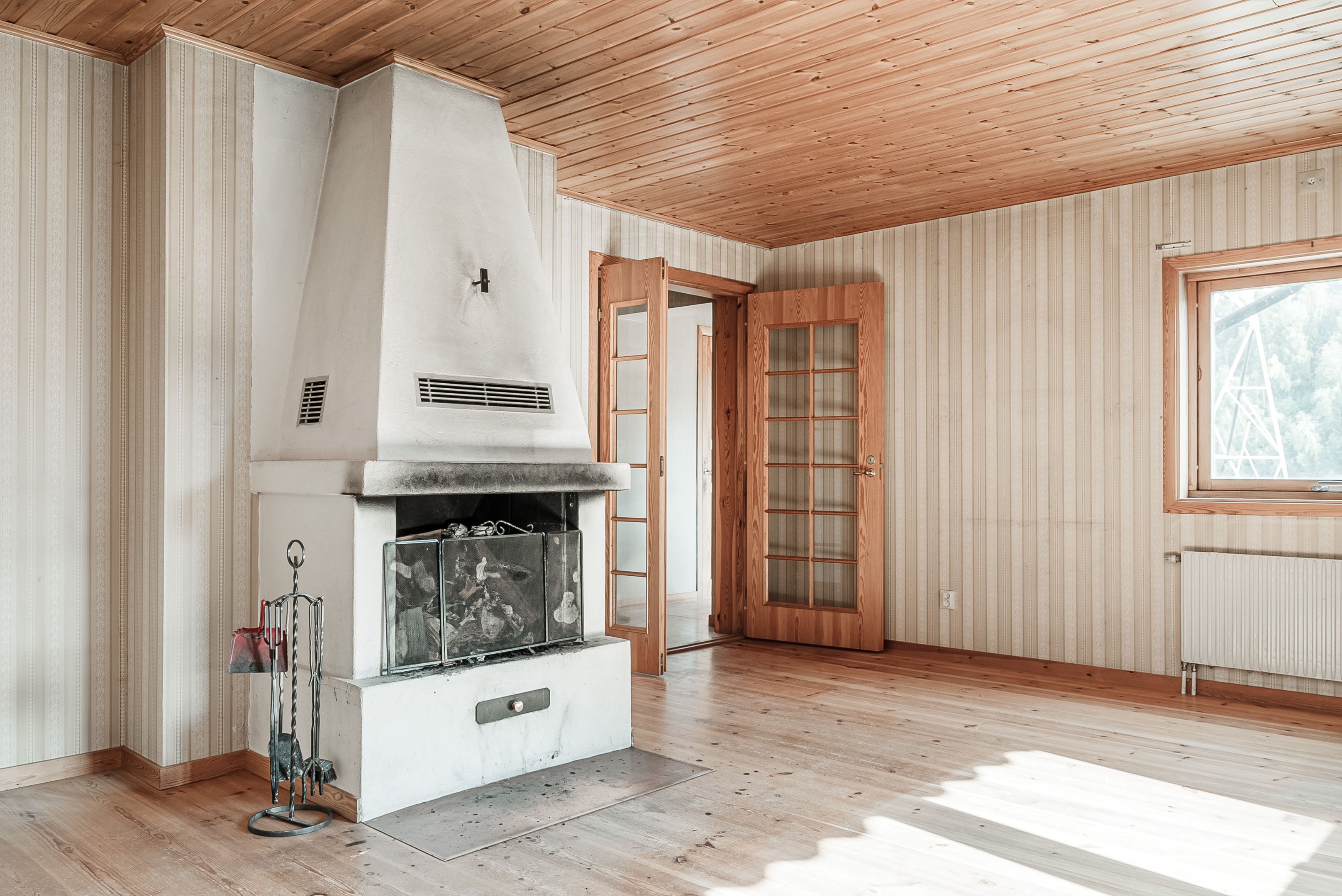 Hall med WC till höger några steg in. På samma sida ligger även husets kök som har en bra yta för både matlagning samt plats för matbord. Vardagsrum med bra yta där även öppenspis finns för de kallare dagarna. En trappa upp finner vi husets två sovrum ett större samt ett mindre. I husets källarplan har väggar samt isolering rivits ut efter vattenskada. Skadan har sanerats och torkat av Ocab och lämnats öppen så att spekulanter kan besiktiga husgrunden från insidan samt ha möjlighet att påbörja uppbyggnaden efter tillträde. De utrymmen som funnits här nere är Dusch/bastu, matkällare, pannrum samt förvaringsutrymmen. Tomten kring huset består av gräsyta och här finns förråd, garage samt vindskydd med öppenspis i bakre hörnet för att avnjuta höstdagar samt fina vinterdagar. Varmt välkommen på visning!