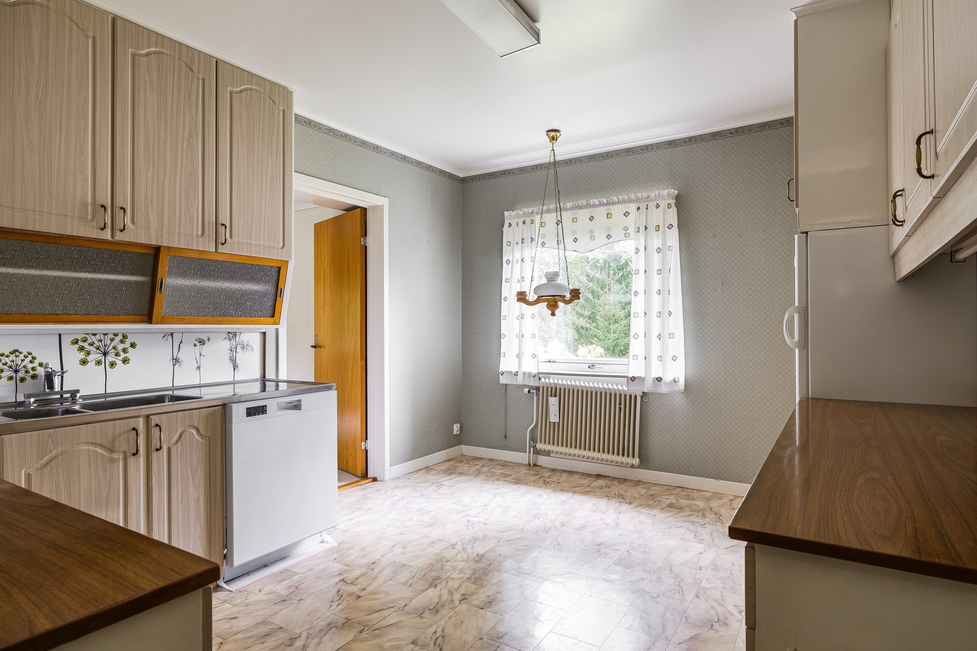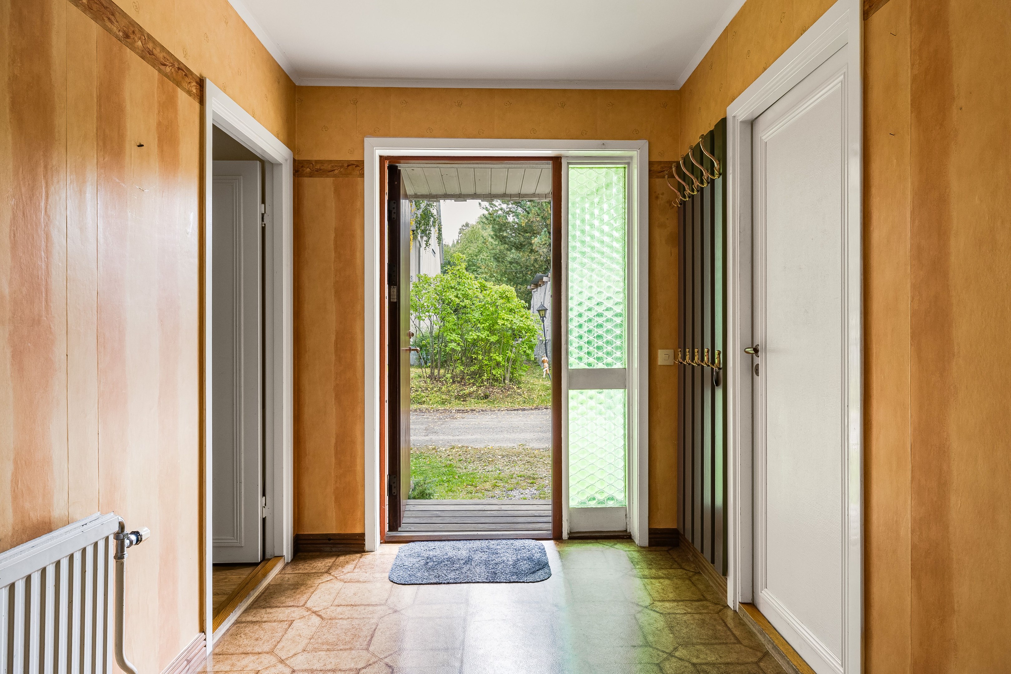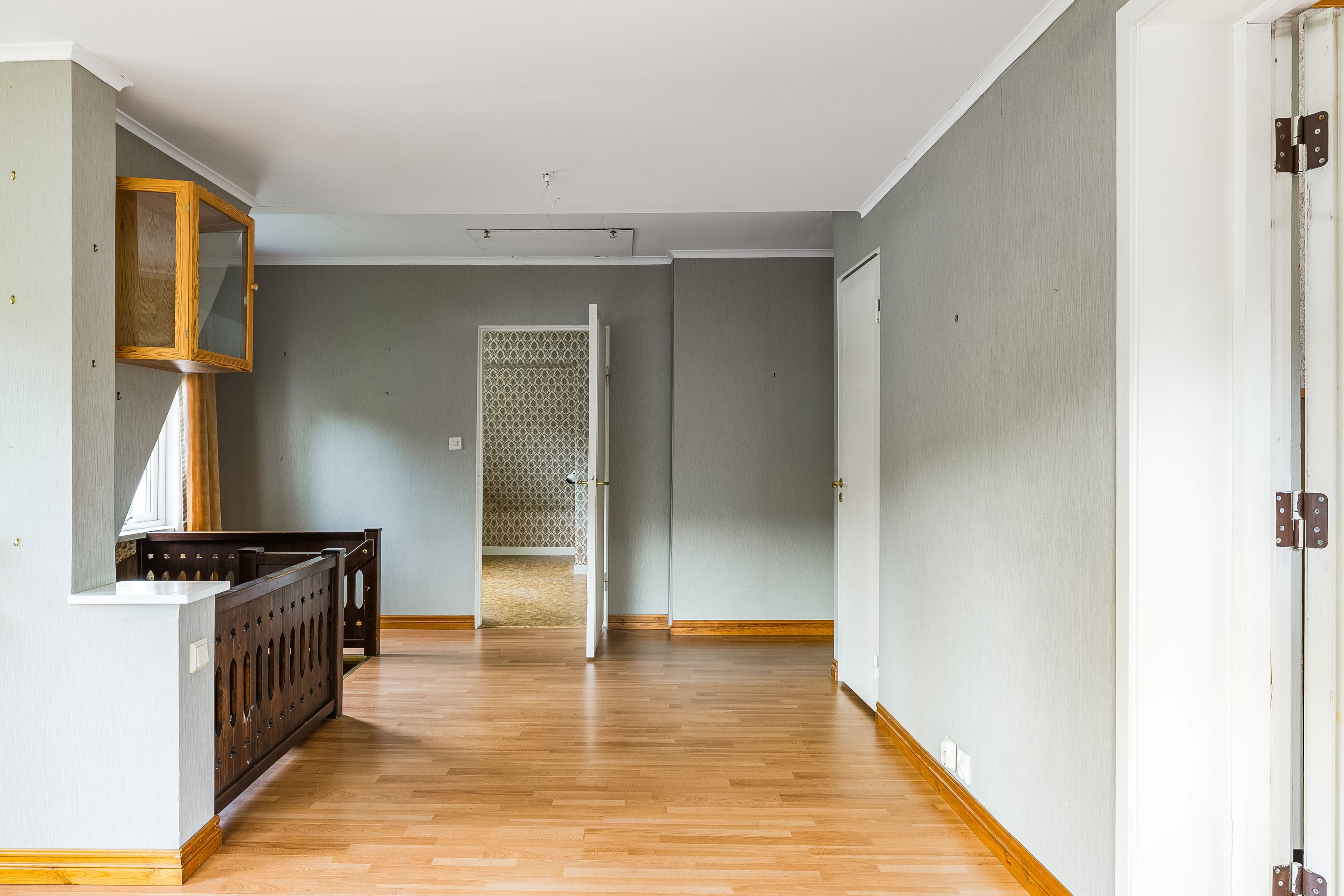 Välkommen in i den rymliga hallen! Direkt till vänster finns rum för klädvård/förvaring men rummet skulle även kunna användas som sovrum. Till höger från entrén finns ytterligare sovrum med bra yta. Vidare in i hallen och till höger ligger husets kök som har normal standard. Från både kök och hall finns även ingång till vardagsrum och matplats där en av ytorna kan byggas om till ytterligare sovrum om behov finns. På entréplan finns även WC där även dörr ner till källarplanet är placerad. En trappa upp möts man av ljust allrum där även utgång till inglasad altan finns. övervåningen har två sovrum där det även finns gott om förvaringsmöjligheter. På övervåningen finns även husets badrum som är utrustat med dusch, handfat samt wc. Källarplan med förvaringsyta samt tvättstuga och pannrum. Tomten runt huset består av gräsyta samt buskar och träd och vid framsidan av huset ligger även dubbelgarage med plats till parkering framför portarna. Varmt välkommen på visning!
