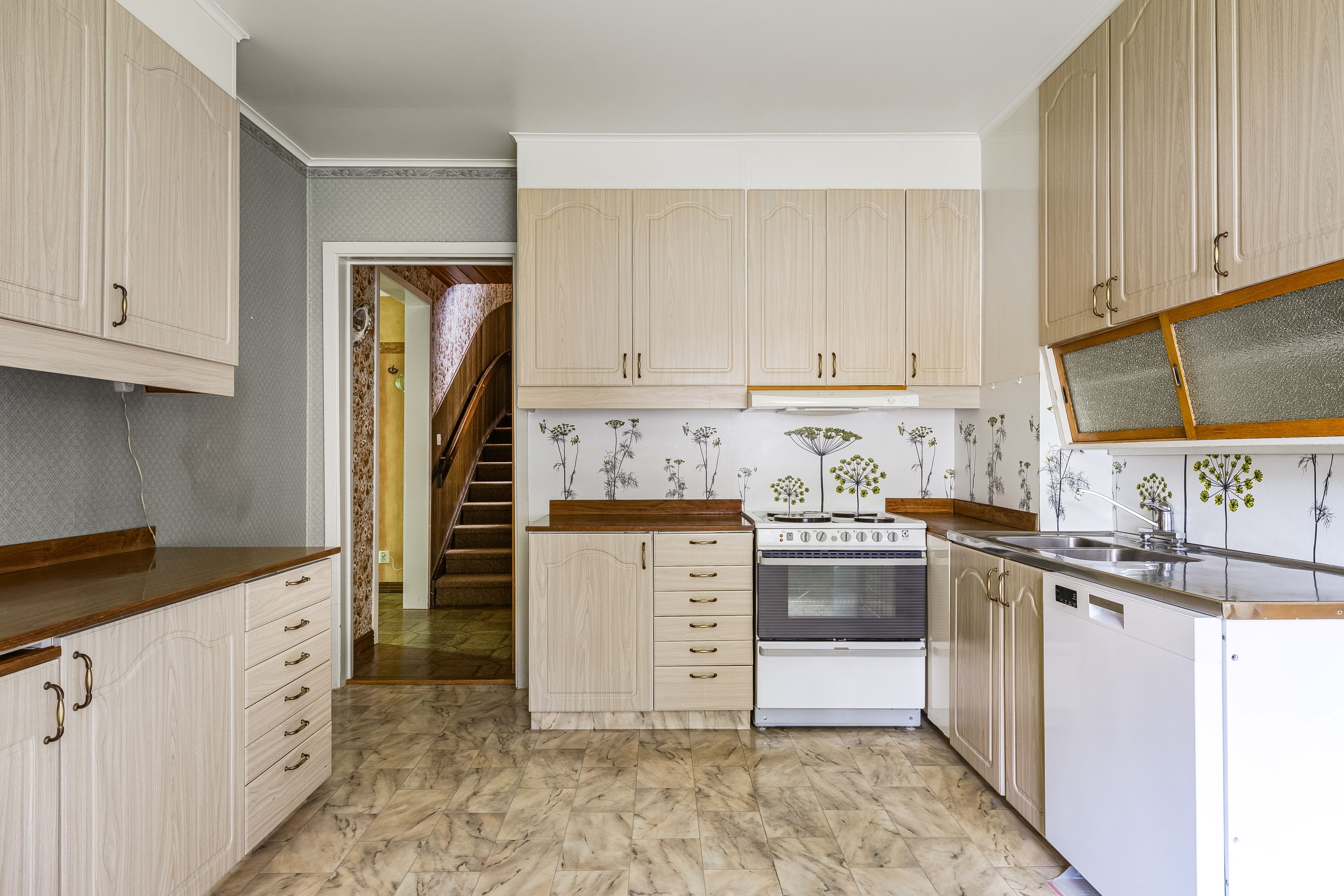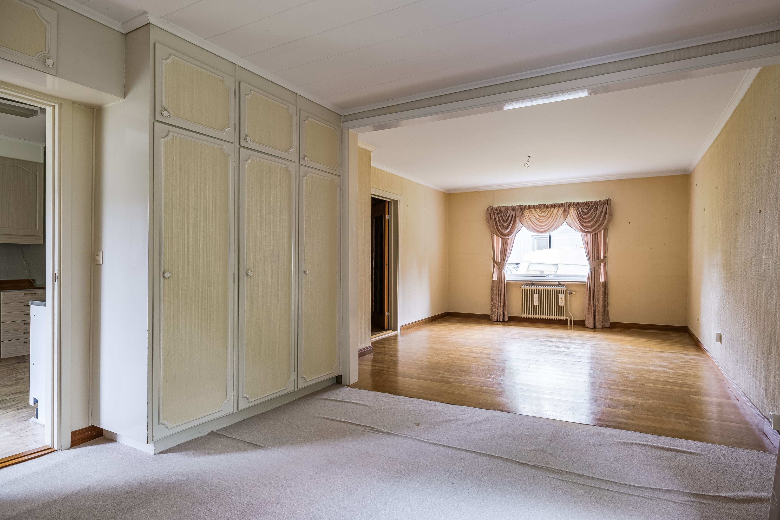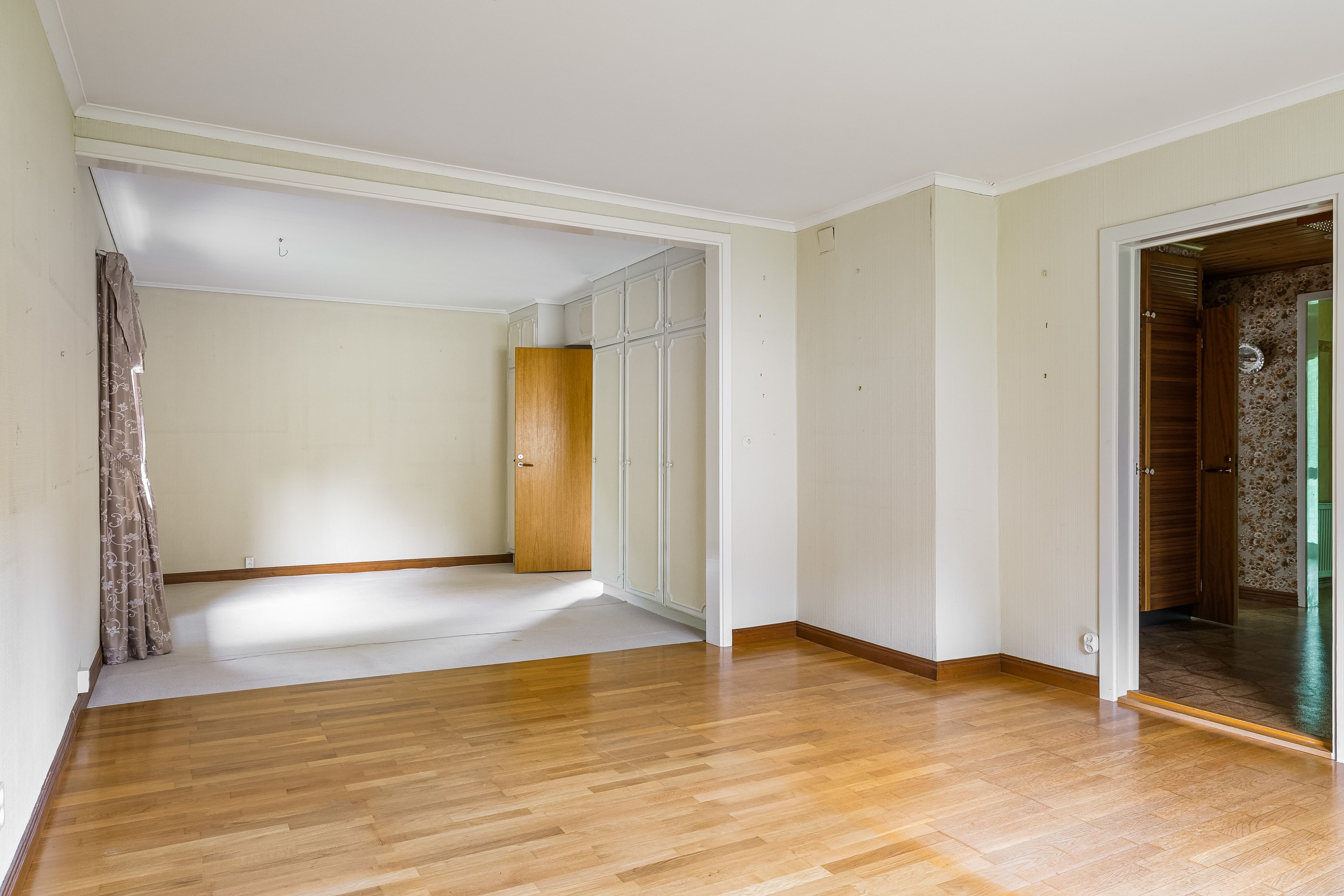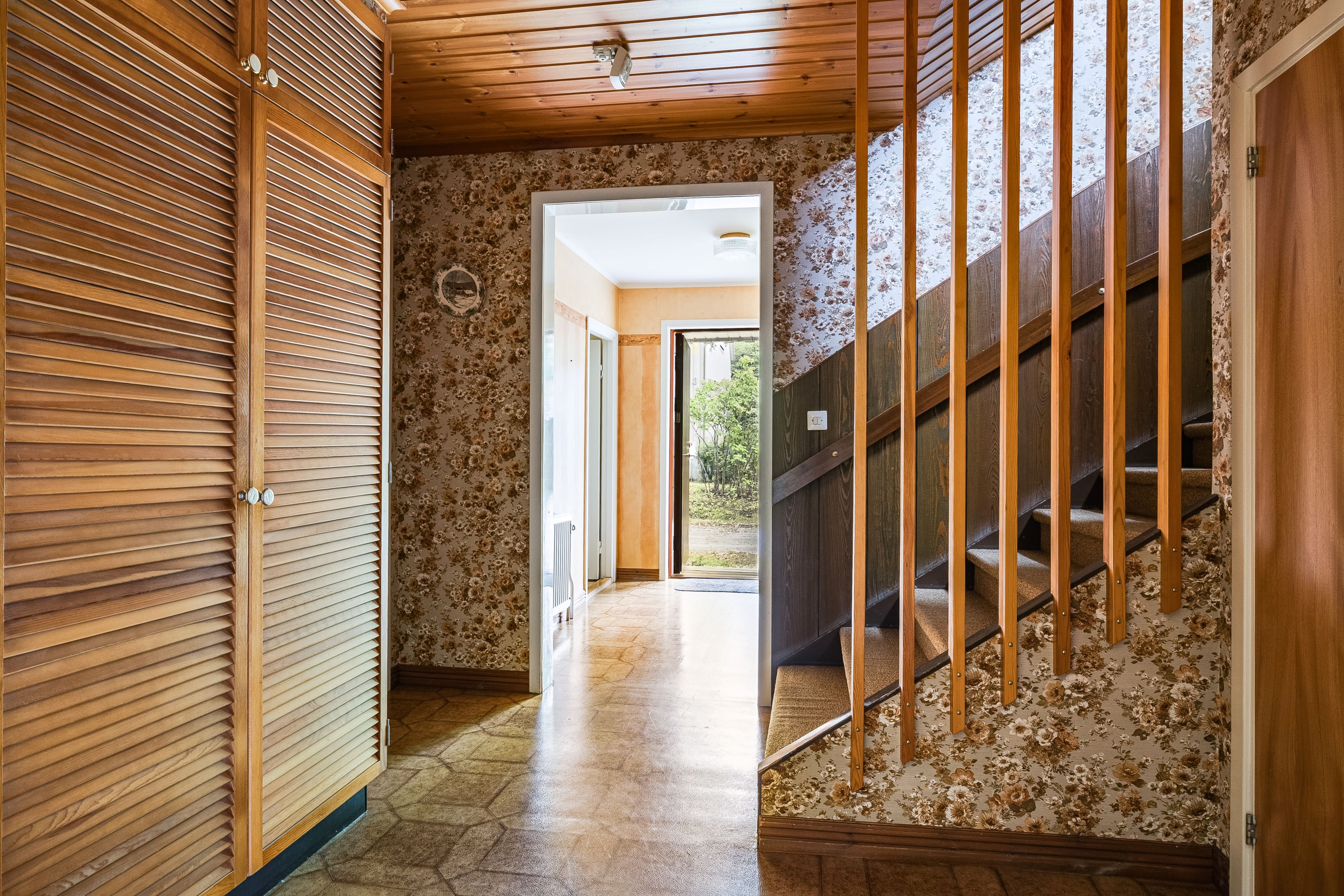 Välkommen in i den rymliga hallen! Direkt till vänster finns rum för klädvård/förvaring men rummet skulle även kunna användas som sovrum. Till höger från entrén finns ytterligare sovrum med bra yta. Vidare in i hallen och till höger ligger husets kök som har normal standard. Från både kök och hall finns även ingång till vardagsrum och matplats där en av ytorna kan byggas om till ytterligare sovrum om behov finns. På entréplan finns även WC där även dörr ner till källarplanet är placerad. En trappa upp möts man av ljust allrum där även utgång till inglasad altan finns. övervåningen har två sovrum där det även finns gott om förvaringsmöjligheter. På övervåningen finns även husets badrum som är utrustat med dusch, handfat samt wc. Källarplan med förvaringsyta samt tvättstuga och pannrum. Tomten runt huset består av gräsyta samt buskar och träd och vid framsidan av huset ligger även dubbelgarage med plats till parkering framför portarna. Varmt välkommen på visning!