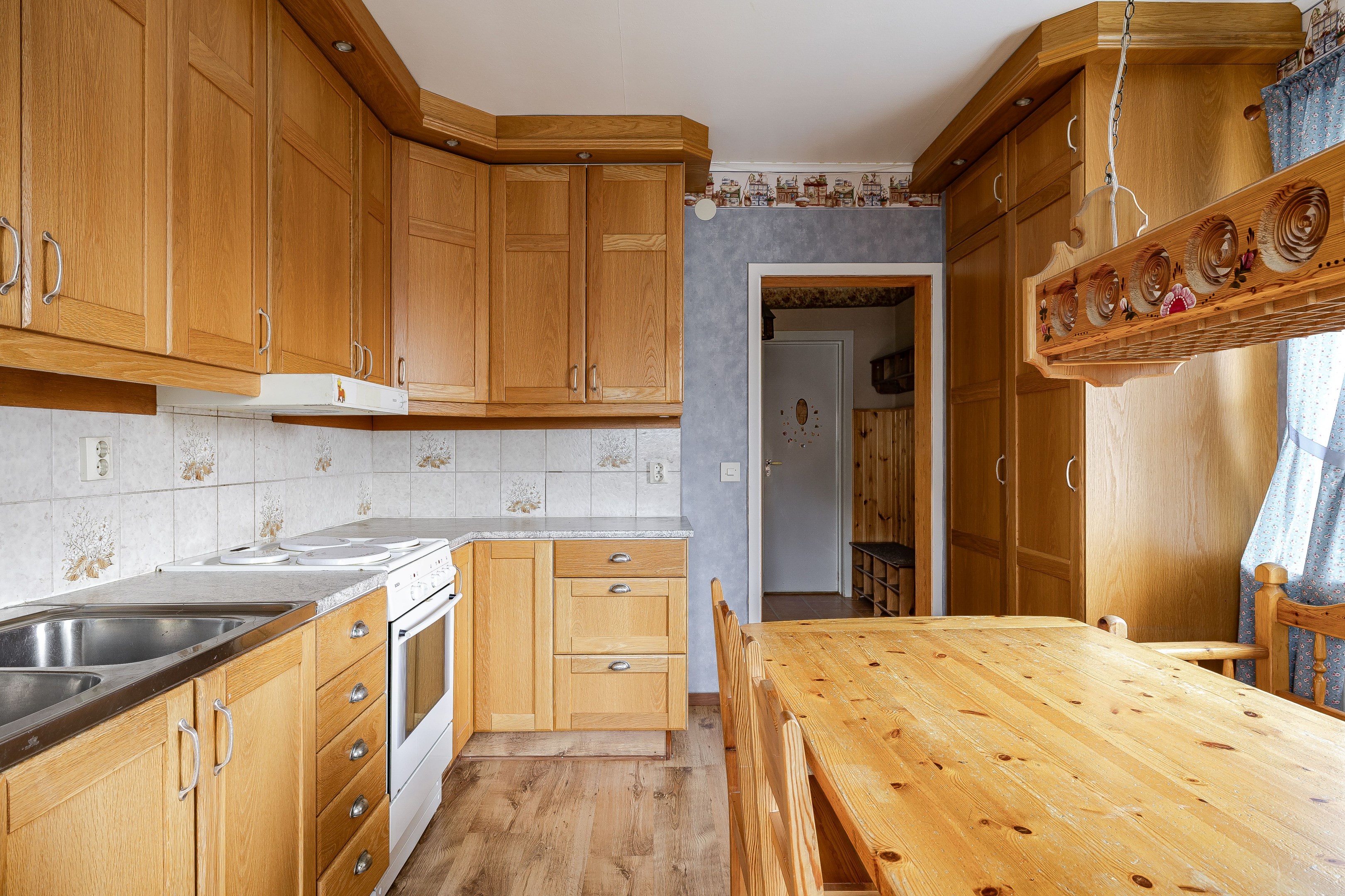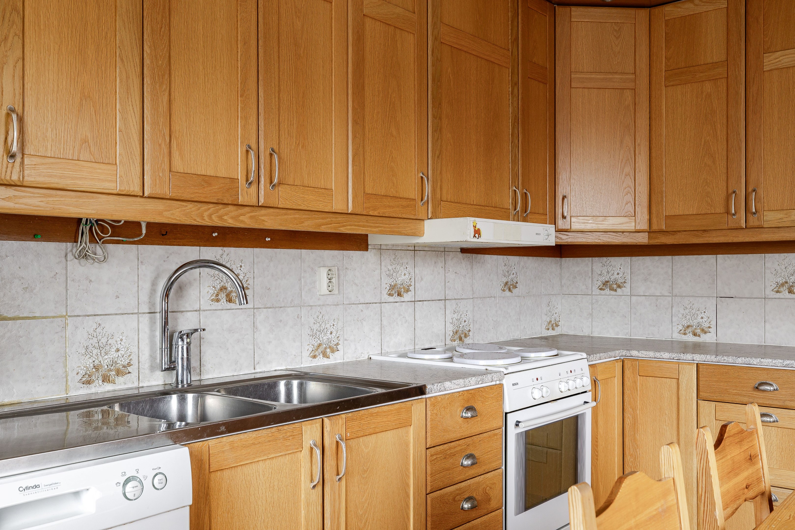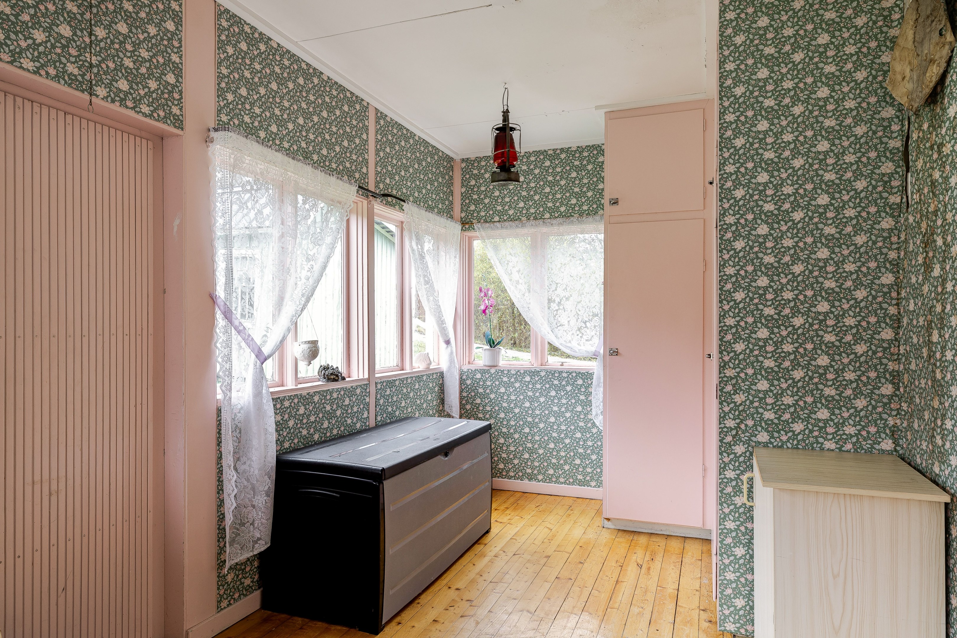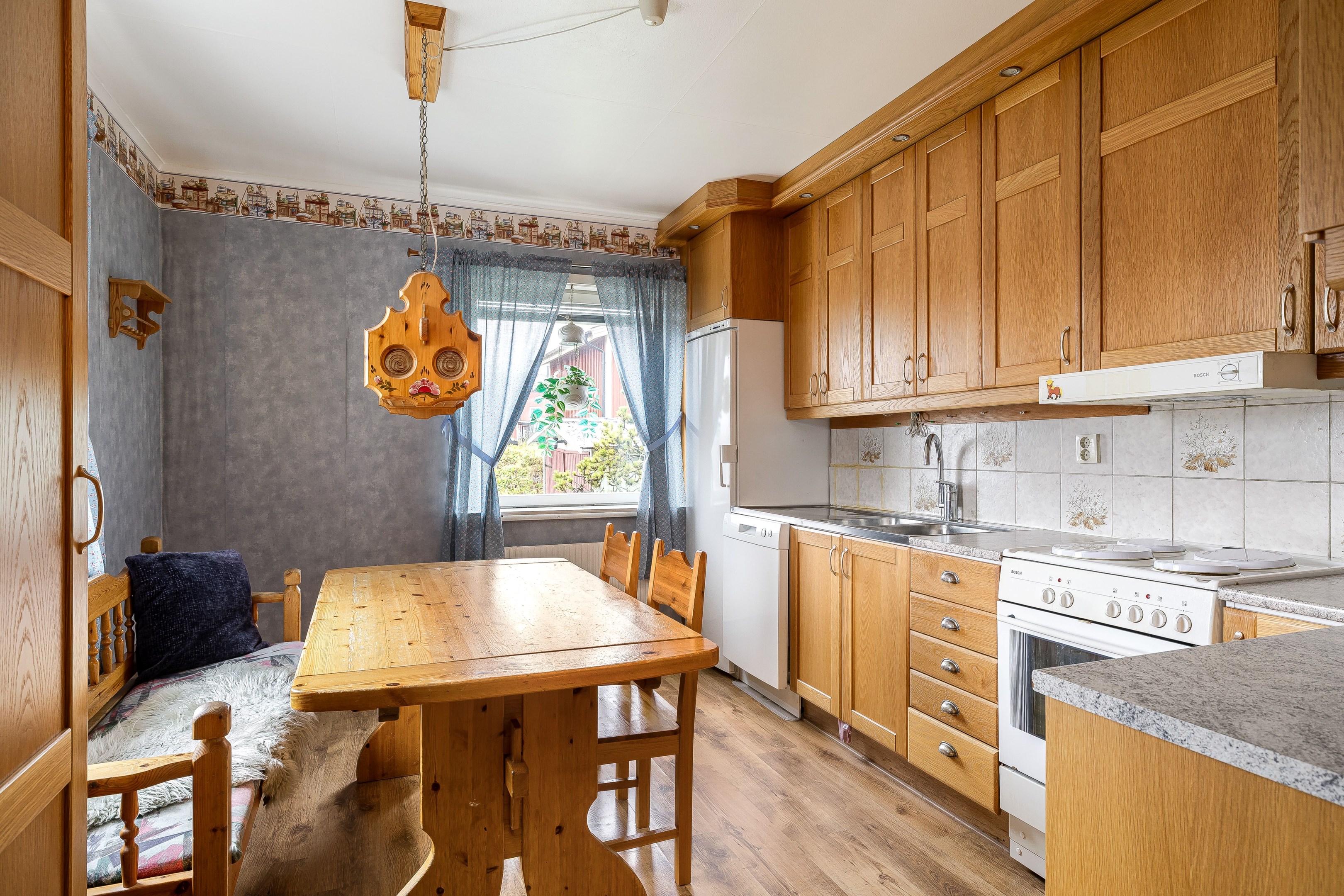 Välkommen in i den rymliga hallen. Här finns plats för ytterkläder samt att hallen leder vidare in till entréplanets alla övriga utrymmen. Direkt till höger ligger husets badrum som är utrustat med wc, kommod, garderober samt dusch. På golv och väggar sitter våtrumsmatta. Till vänster från hallen ligger husets kök som har bra med bänkyta samt plats för matbord. Köket renoverades 2010. Vidare in i huset når vi vardagsrummet som har två rum i fil, det ena utrymmet skulle kunna byggas om till ett extra sovrum. Från vardagsrummet når man även husets inglasade uterum. En trappa upp når vi husets två sovrum som har gott om plats till möblering. På övervåningen finns även mindre wc. Huset har även källare under hela ytan och här nere erbjuds gott om plats till förvaring samt pannrum och en stor tvättstuga! På tomten finns lekstuga, förrådsbyggnad samt garage vid uppfarten. Tomten runt huset är plan och består av gräsmatta och träd och buskar. Varmt välkommen på visning!